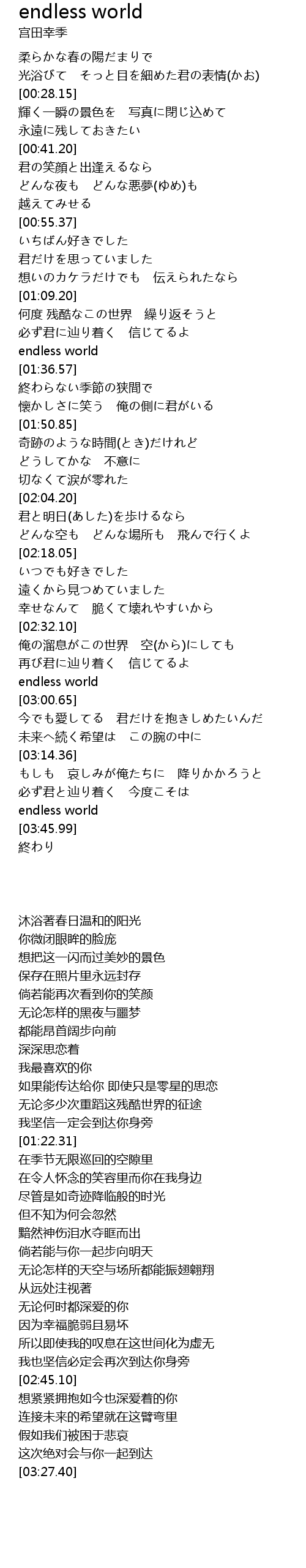 | [02:25.33] | 幸せなんて 脆くて壊れやすいから |