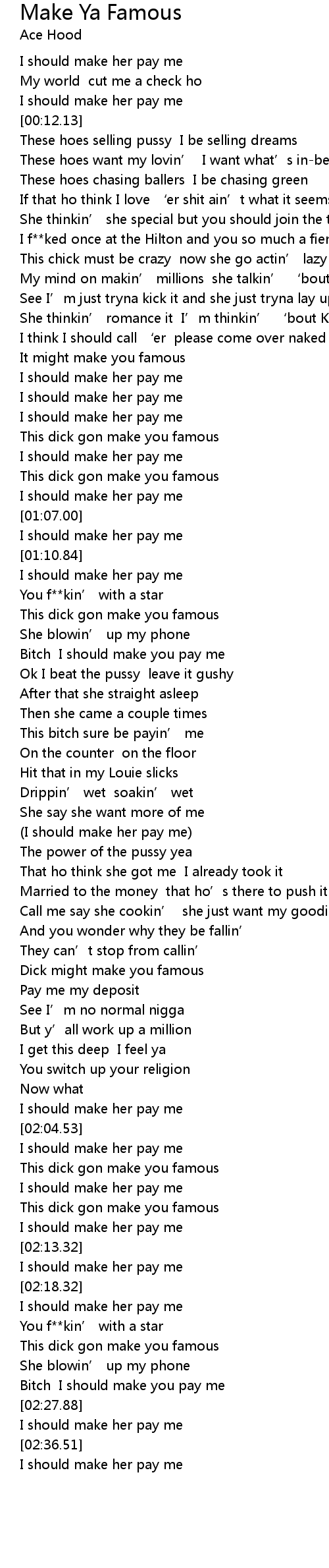 | [00:30.32] | I f**ked once at the Hilton and you so much a fiend |