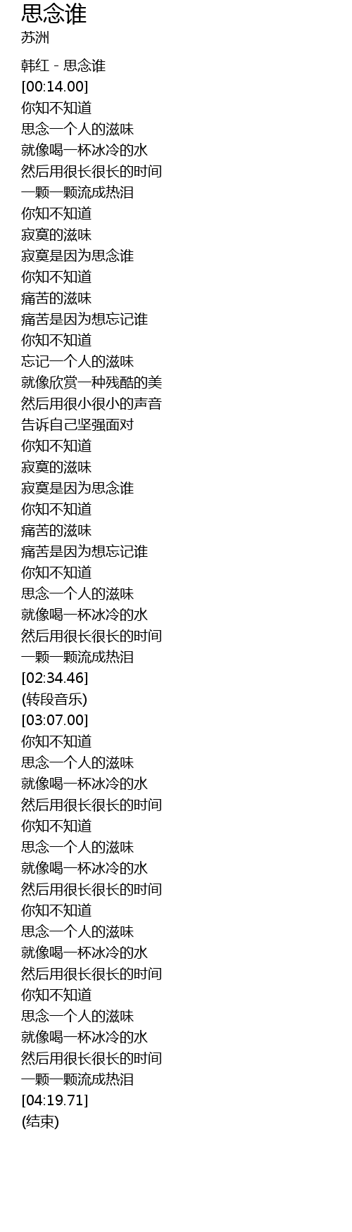 | [03:43.16] | sī niàn yí ge rén de zī wèi |