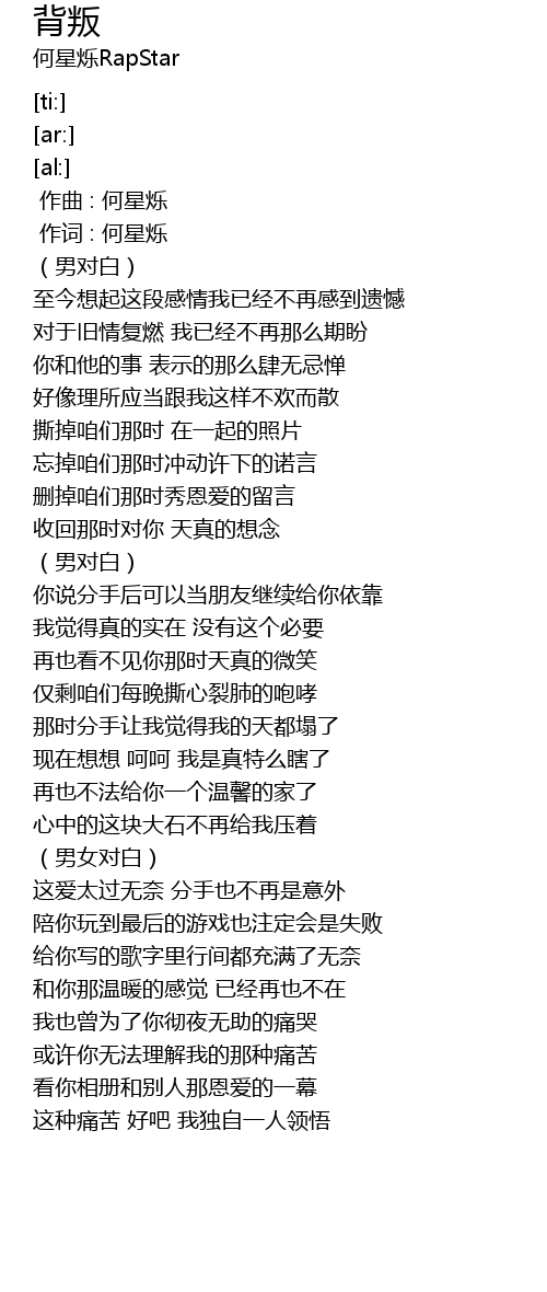 | [00:01.00] | zuò cí : hé xīng shuò |
