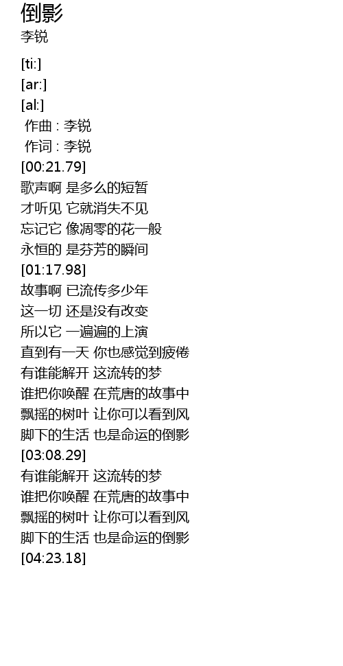 | [04:11.60] | 脚下的生活 也是命运的倒影 |