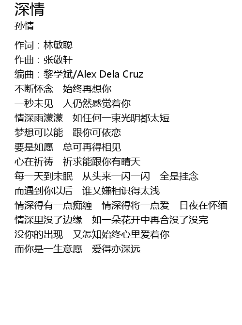| 情深得有一点痴缠 情深得将一点爱 日夜在怀缅 | |
