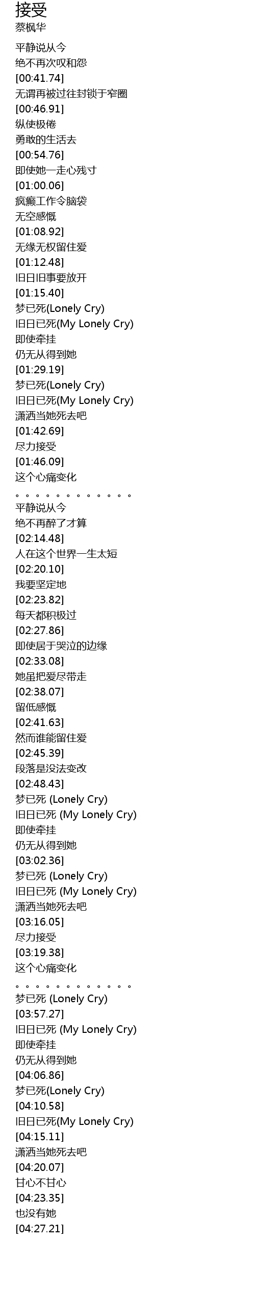 | [04:12.02] | 旧日已死(My Lonely Cry) |