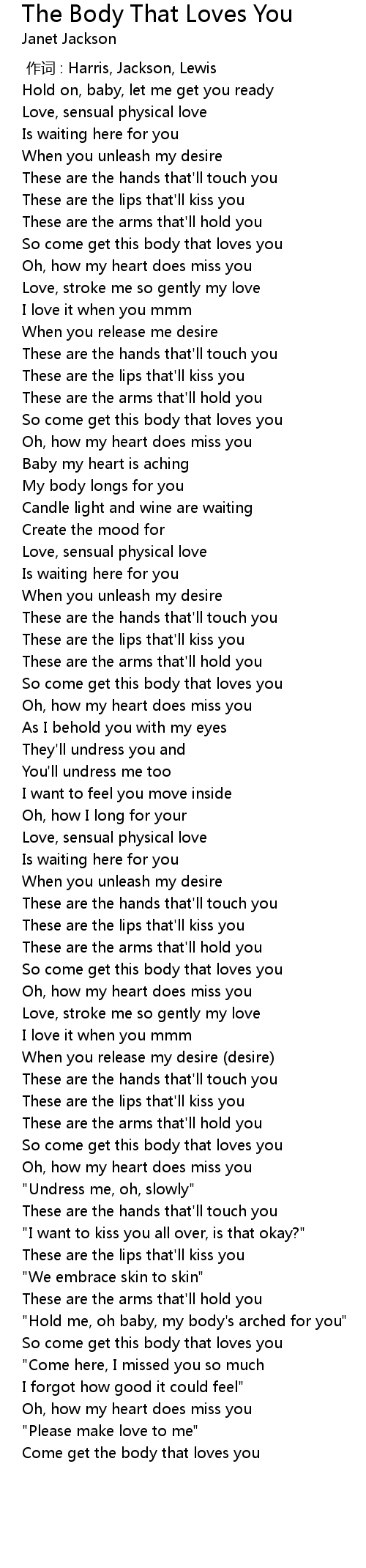 | [05:00.052] | " Hold me, oh baby, my body' s arched for you" |