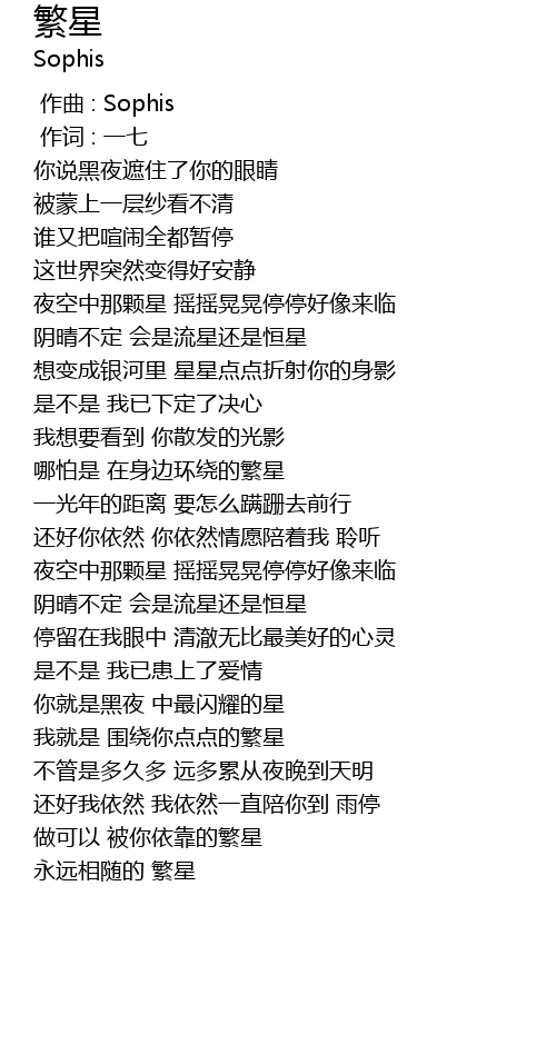 | [00:51.51] | 阴晴不定 会是流星还是恒星 |