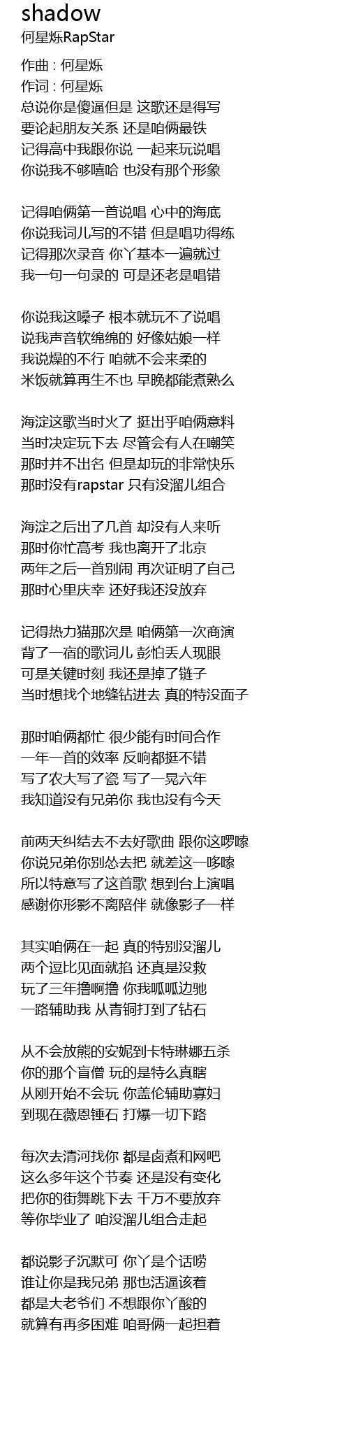 | Artist | 何星烁RapStar |