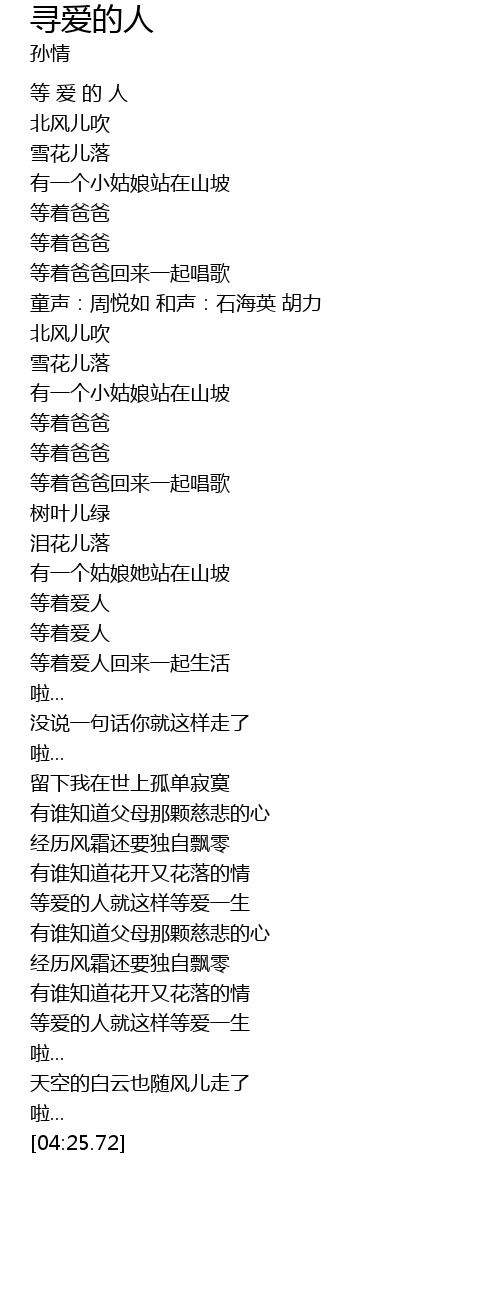 | [01:45.12] | 等着爱人 |