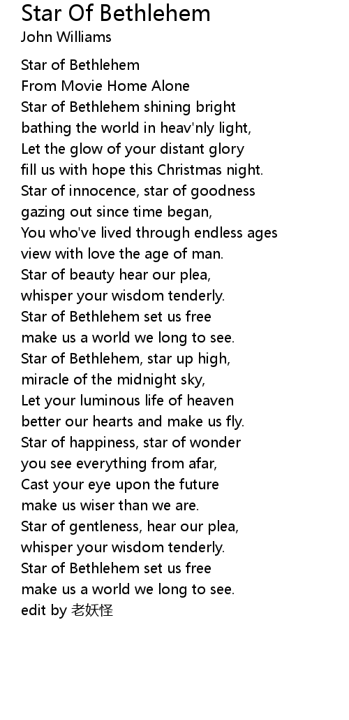 | [00:18.27] | Star of Bethlehem shining bright |