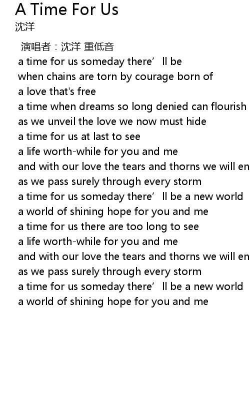 | a time for us someday there' ll be a new world | |