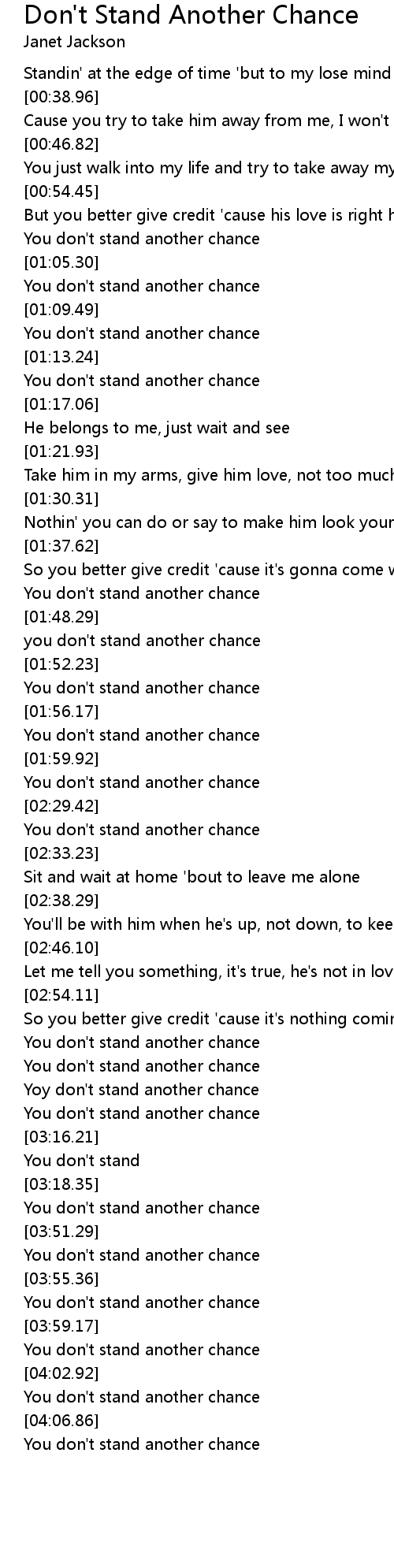 Yoy don't stand another chance |
