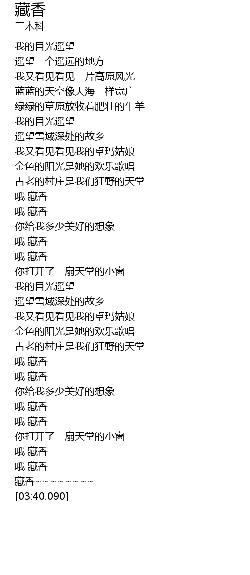 | [01:10.330] | 我又看见看见我的卓玛姑娘 |