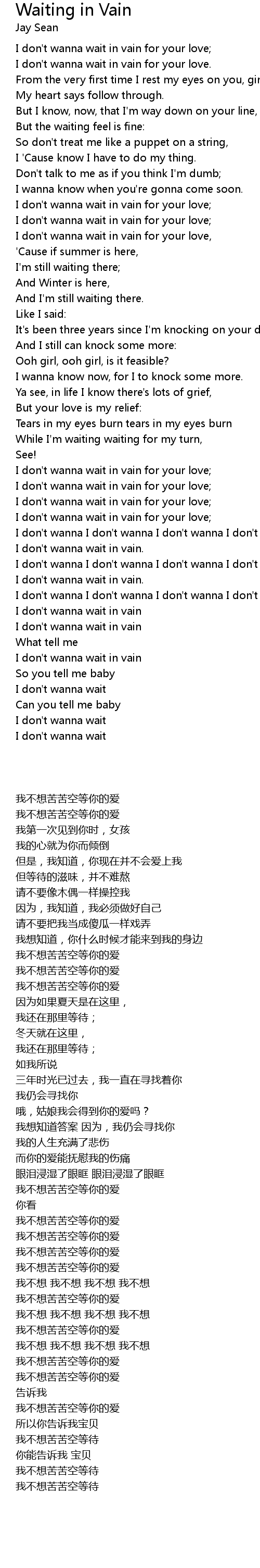 I don't wanna wait in vain for your love. |