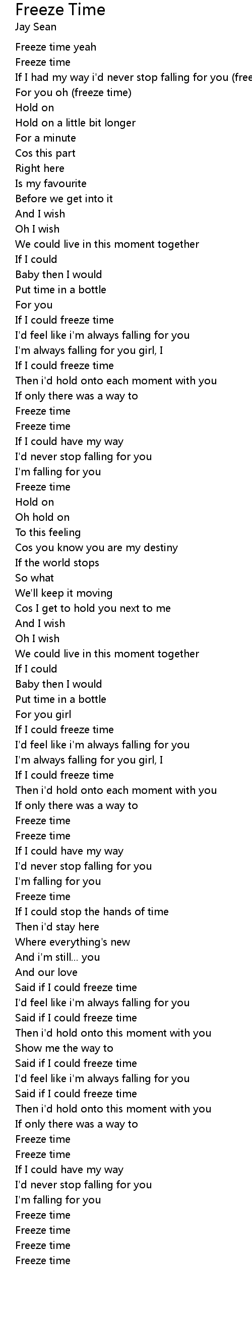 If I had my way i'd never stop falling for you (freeze time) |