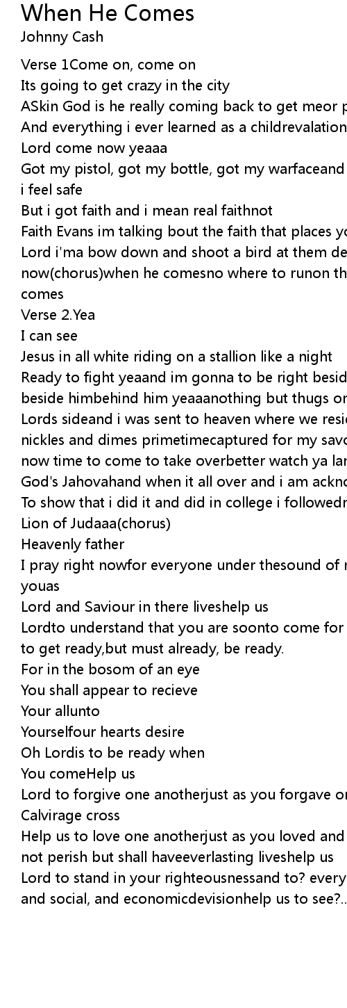 Lord i'ma bow down and shoot a bird at them devils cause its onnowit's on now(chorus)when he comesno where to runon that day,the world gonna paywhen he comes |