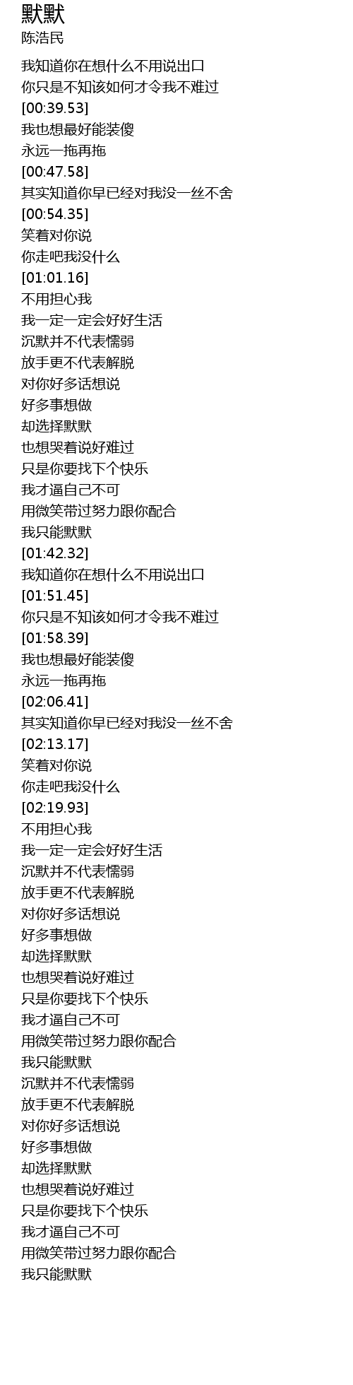 | [01:38.92] | 我只能默默 |