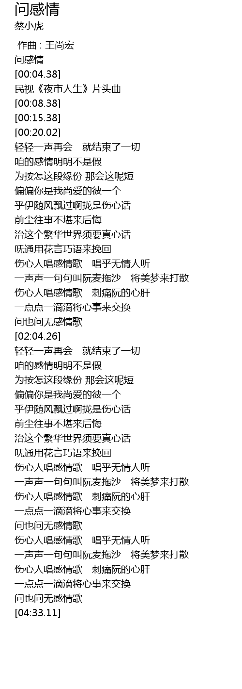 | [04:23.25] | 问也问无感情歌 |