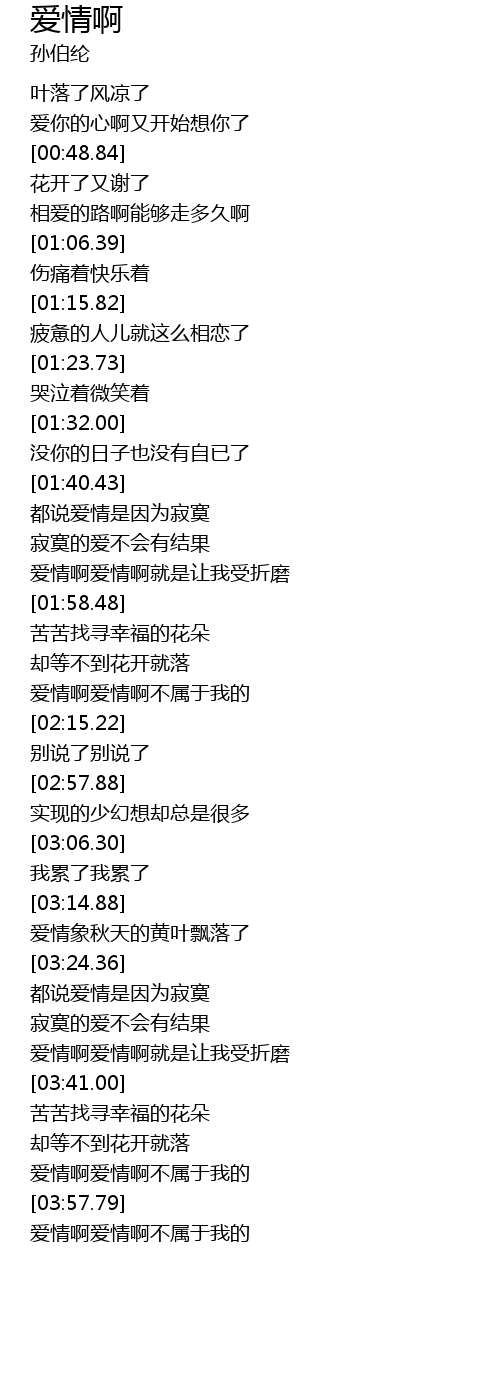 [03:51.90] 爱情啊爱情啊不属于我的