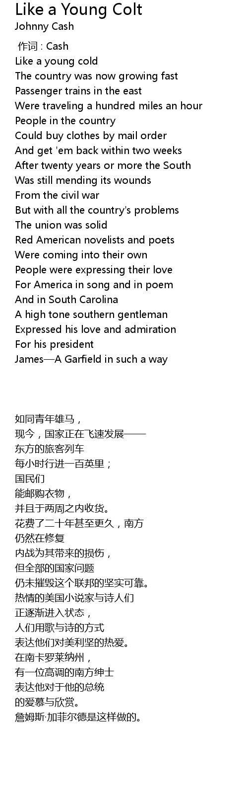 | Song | Like a Young Colt |