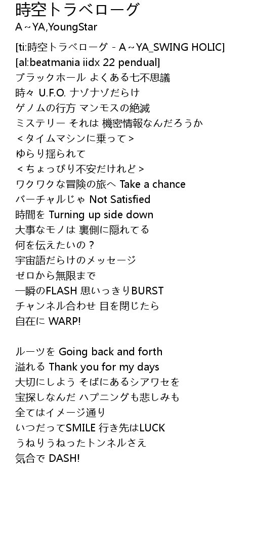 | [ti:時空トラベローグ - A~YA_SWING HOLIC] | |