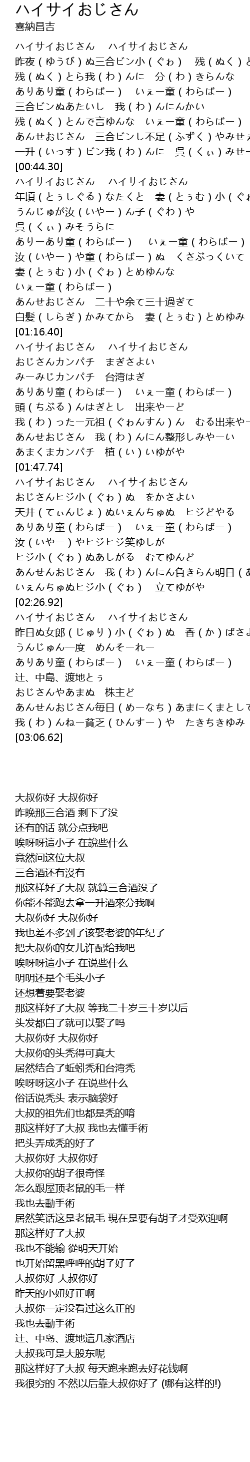 | [00:47.34] | ハイサイおじさん ハイサイおじさん |