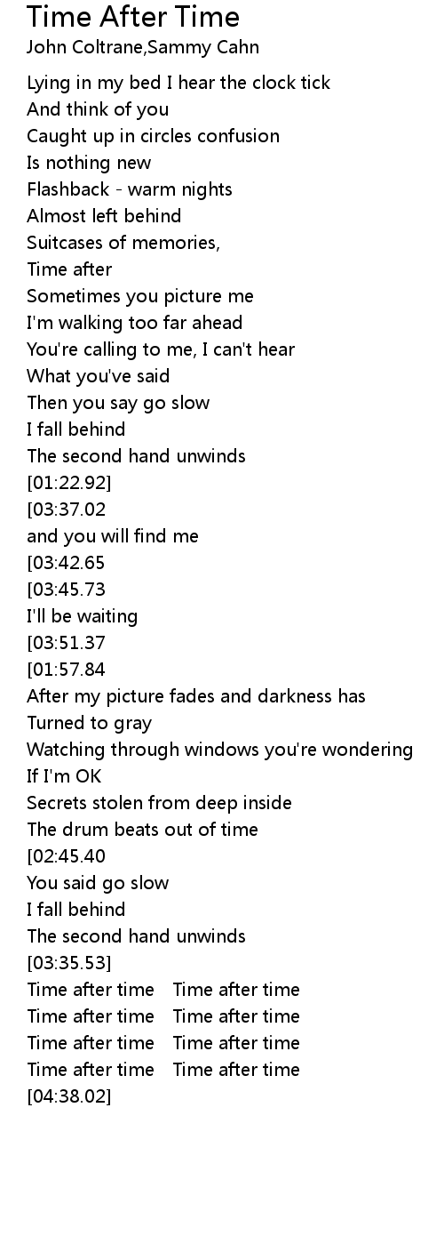 | [04:08.88][03:51.37][03:00.25][01:54.85][01:37.32] | Time after time |
