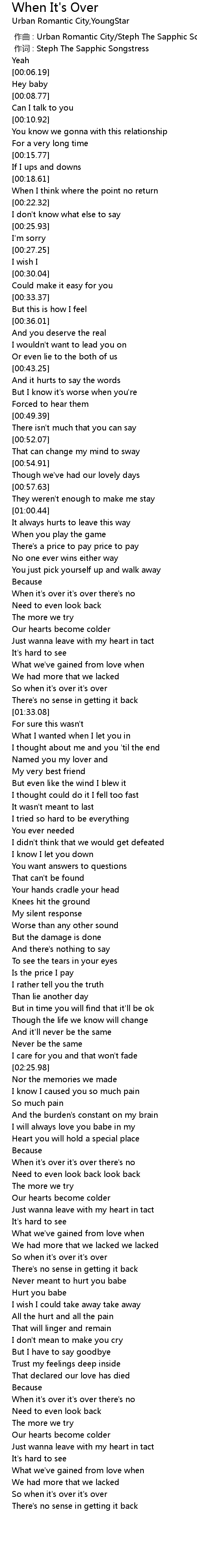| [00:00.00] | 作曲 : Urban Romantic City/Steph The Sapphic Songstress |