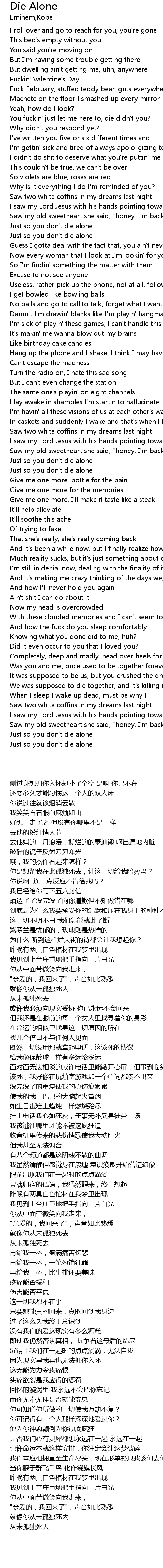| [02:47.45] | Saw two white coffins in my dreams last night |