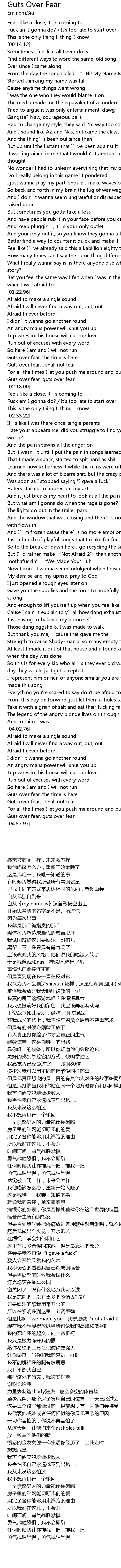 | [02:13.61] | Guts over fear, guts over fear |