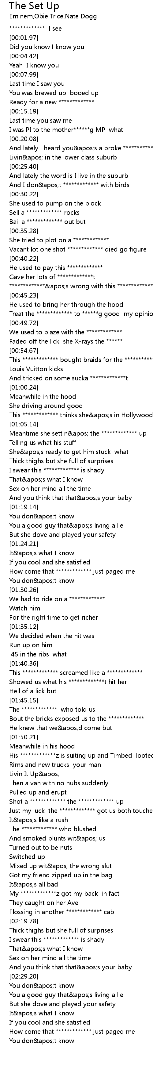 | [02:10.67] | Mixed up wit' the wrong slut |
