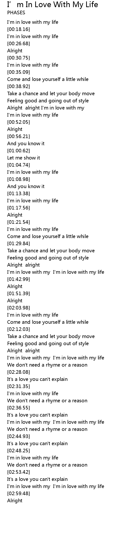 | [02:39.42] | I'm in love with my I'm in love with my life |