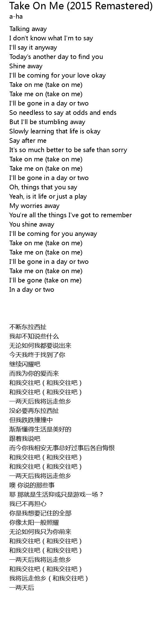 Take me on (take on me) |