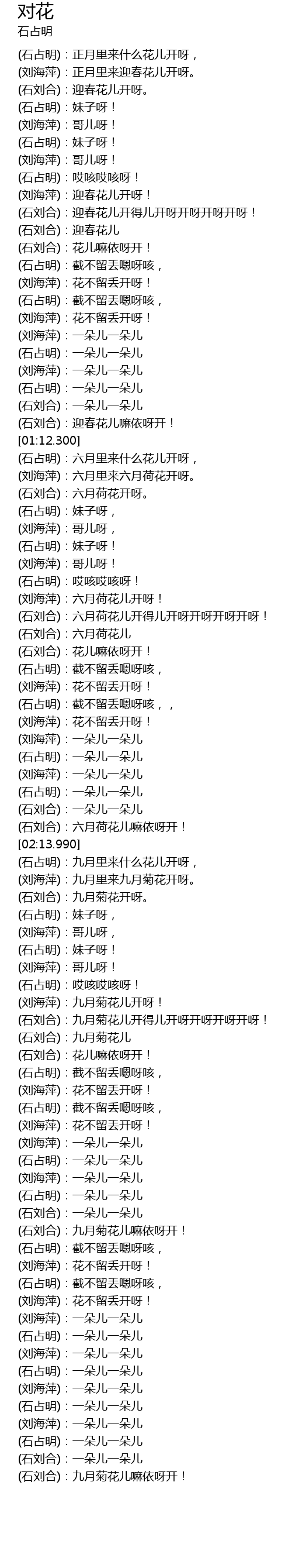 | [02:09.450] | (石刘合):一朵儿一朵儿 |