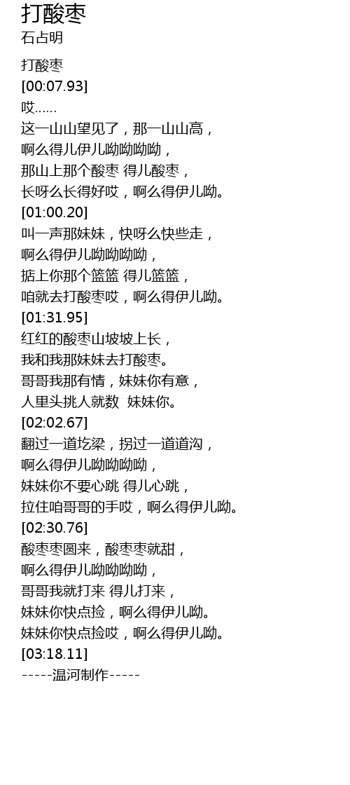 | [01:23.31] | 咱就去打酸枣哎,啊么得伊儿呦。 |