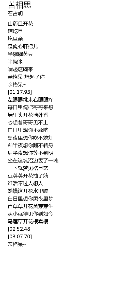 | [01:28.11] | 每日里俺把哥哥来想 |