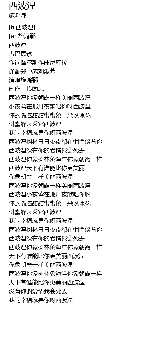 | [01:33.871] | 西波涅你象树林象海洋你象朝霞一样 |