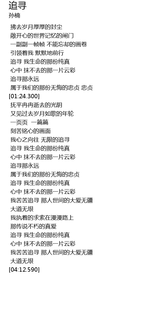 | [02:13.610] | 追寻 我生命的那份纯真 |