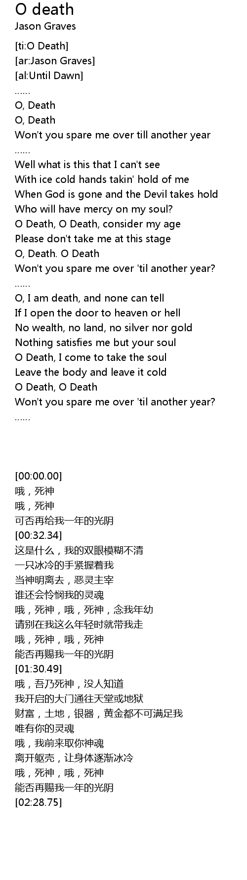 | [02:18.74] | Won't you spare me over 'til another year? |