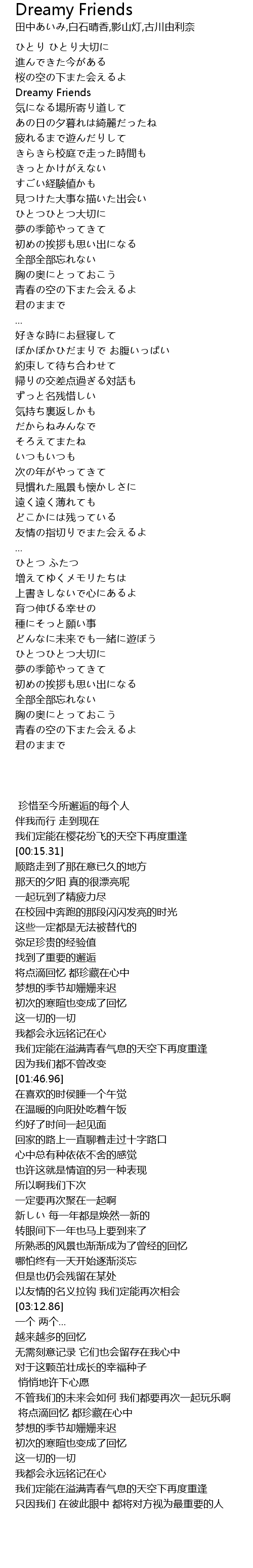 | [00:15.31] | Dreamy Friends |
