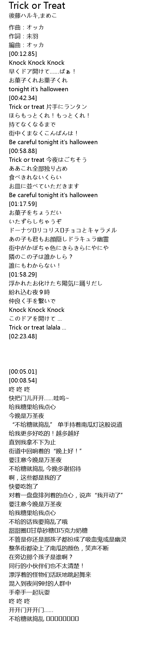 | [01:03.65] | Trick or treat 今夜はごちそう |