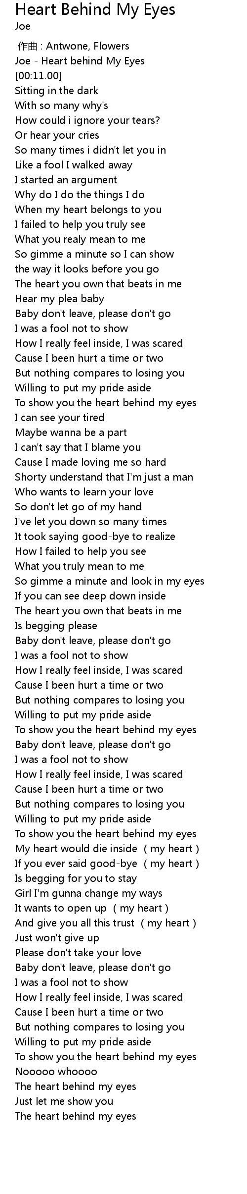 | [00:02.00] | Joe - Heart behind My Eyes |