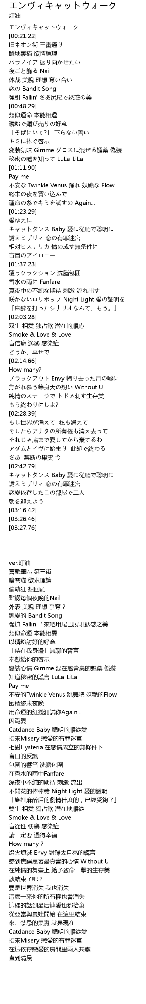 | [01:12.21] | 不安な Twinkle Venus 踊れ 妖艶な Flow |