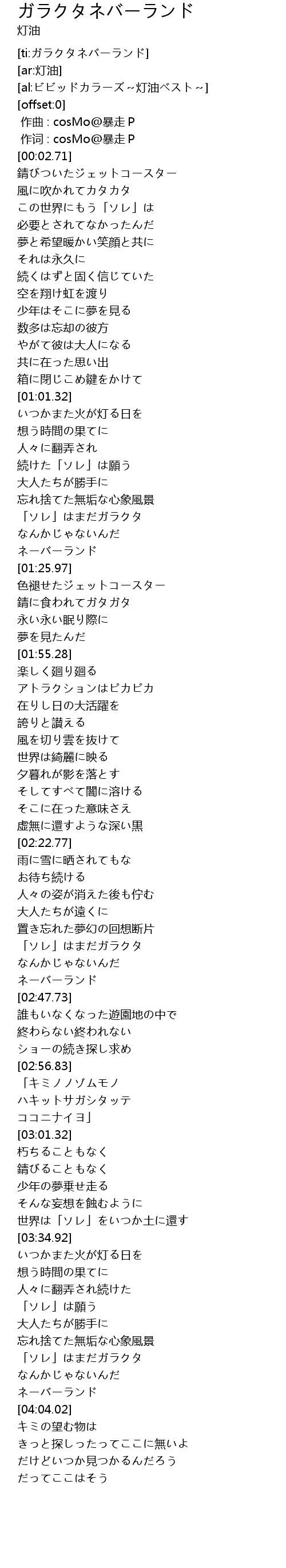 | [00:00.690] | 作词 : cosMo@暴走P |