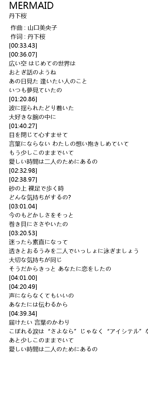 | [03:31.56] | 透きとおるうみを二人でいっしょに泳ぎましょう |