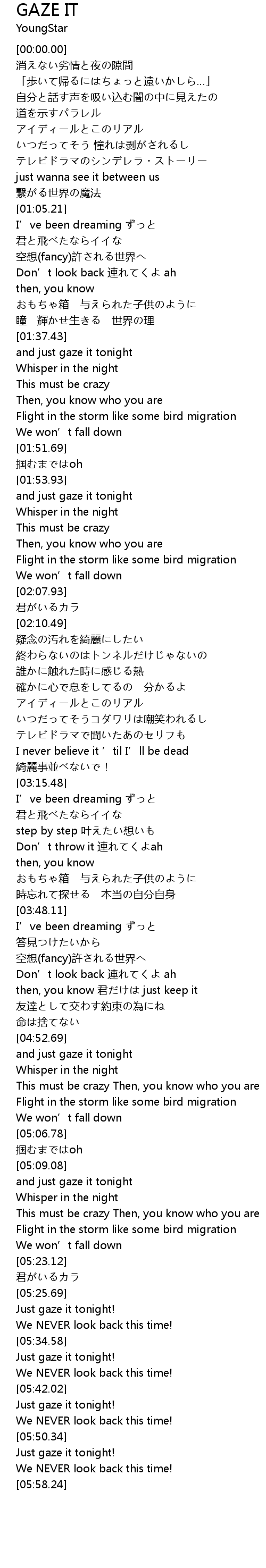 | [05:51.41] | Just gaze it tonight! |