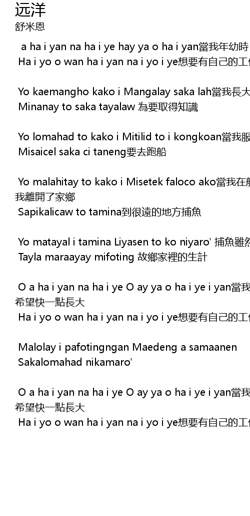 | a ha i yan na ha i ye hay ya o ha i yan當我年幼時 希望快一點長大 | |