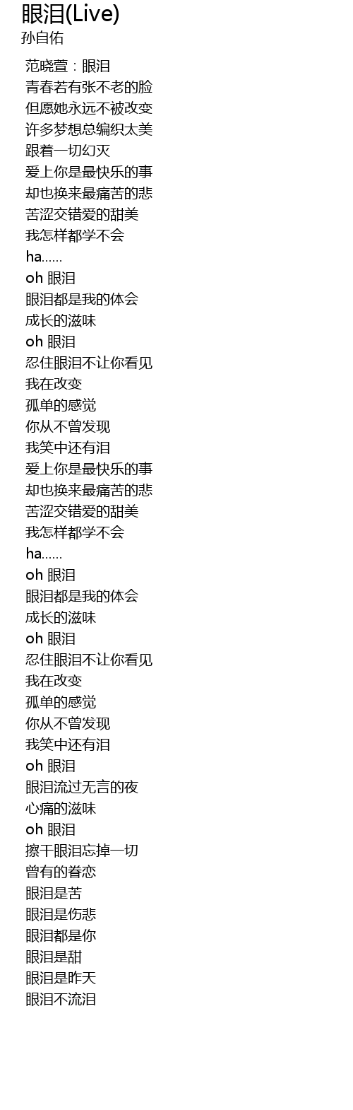 | [02:51.700] | yǎn lèi dōu shì wǒ de tǐ huì |