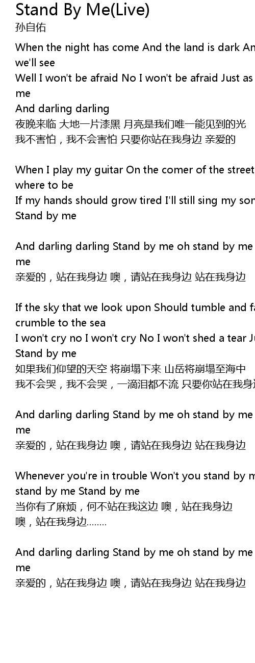 | And darling darling Stand by me oh stand by me Oh stand now stand by me Stand by me | |