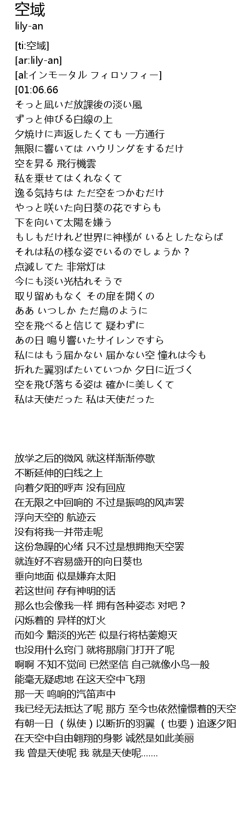 | [01:06.87] | kōng shēng fēi xíng jī yún |