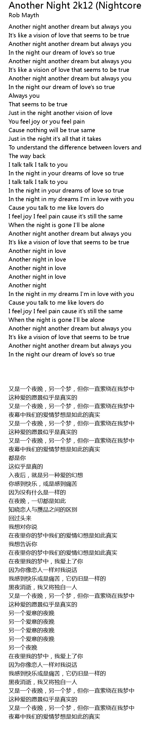 | [00:26:600] | Another night another dream but always you |