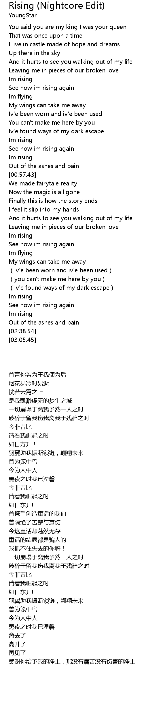 | [02:29.21] | See how im rising again |